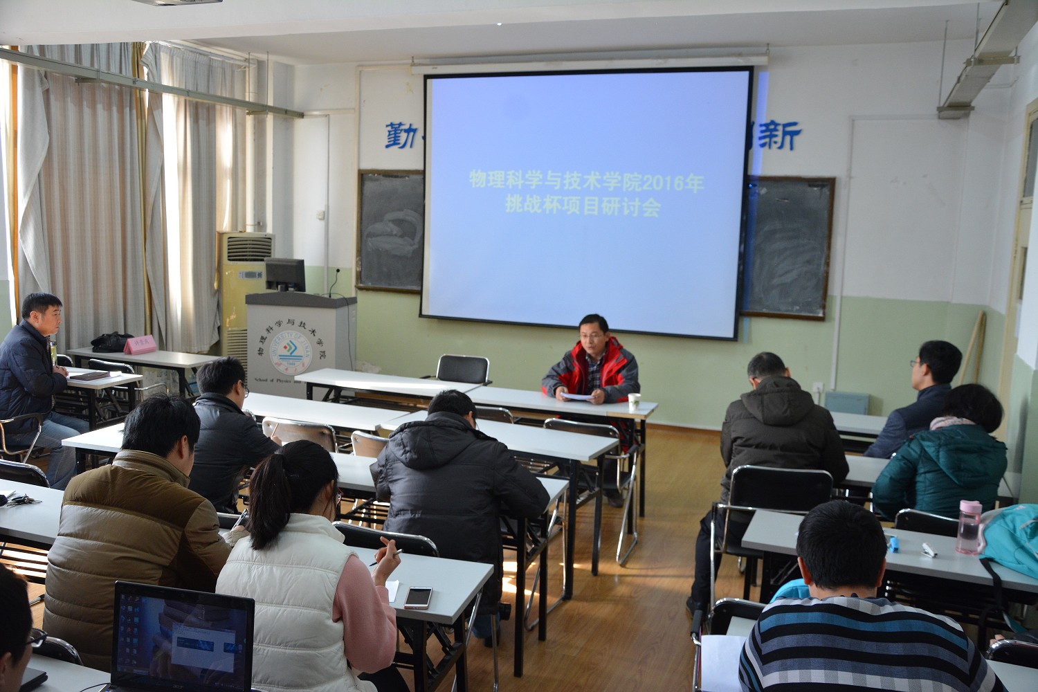 “挑战杯”全国大学生课外学术科技作品竞赛反映当前大学生勇于创新的精神风貌,是当前最具代表性、权威性、的大学生竞赛,多年来吸引了众多同学积极参与。为使参赛选手查找选送作品的不足与欠缺,更好地完善参赛项目,2016年11月23日,必赢76net线路官网于7教B402召开了“挑战杯”赛前培训会。学校科技处副处长王勇老师、学院党委副书记王义老师、“泰山学者”徐锡金老师等学院数十名指导教师出席了此次培训会。