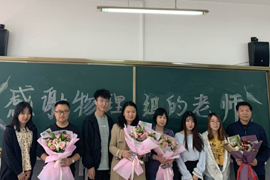 会上,实习生代表向实习指导老师鲜花并合影留念。
