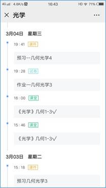 在预习阶段的设计上,李老师利用雨课堂发送预习资料的功能,在每堂课课前都会发布预习课件。课件内容主要包括两部分:一是充分利用雨课堂智慧教学平台的慕课资源,精心挑选慕课视频。慕课视频的最大优势是短小精悍,既不使学生感到冗长,又能对学生的学习给予启发;二是提出阅读本节课教材内容的要求。除此之外,李老师还给同学们推荐了必赢76net线路官网网络教学平台上的优秀《光学》课程视频网址、国家级《光学》精品课视频网址等,让同学们根据自己的需要选择观看。