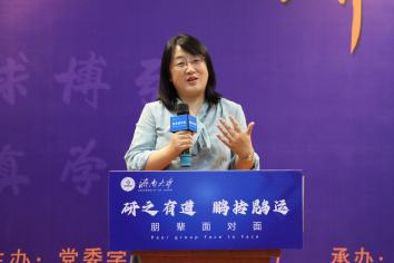 学院党委书记郑爱华进行总结发言,向同学们介绍了近年来物理学院考研情况。郑书记讲到,学院始终以学风建设为主线,以考研就业、科创为抓手,创优争先,考研录取率从2017年的32.2%、2018年的34.1%,到2019至今始终稳定在40%以上。从学院领导班子到专任教师,从辅导员到班主任,尽心尽力,帮助同学们在考研的道路上走得更远。