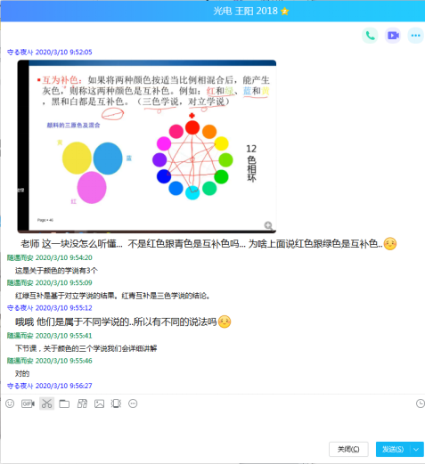 线上教学对于大多数教师来说还是比较新的教学形式,很多老师之前没有接触过,线上教学效果面临挑战。因此开课前,宋朋主任组织光电系老师参加学校和学院组织的各类线上教学技能和软件平台使用培训,交流线上教学经验,确保每一门课程都能顺利开展线上教学。目前光电系所负责的所有课程,采用钉钉直播、雨课堂、QQ屏幕分享、必赢76net线路官网网络课程平台、微视频等形式,结合QQ课程群和微信群,进行线上线下结合混合式教学。在不断探索总结中,光电系老师逐步熟悉线上教学的特点、掌握线上教学的技能,网络教学效果逐步提高。