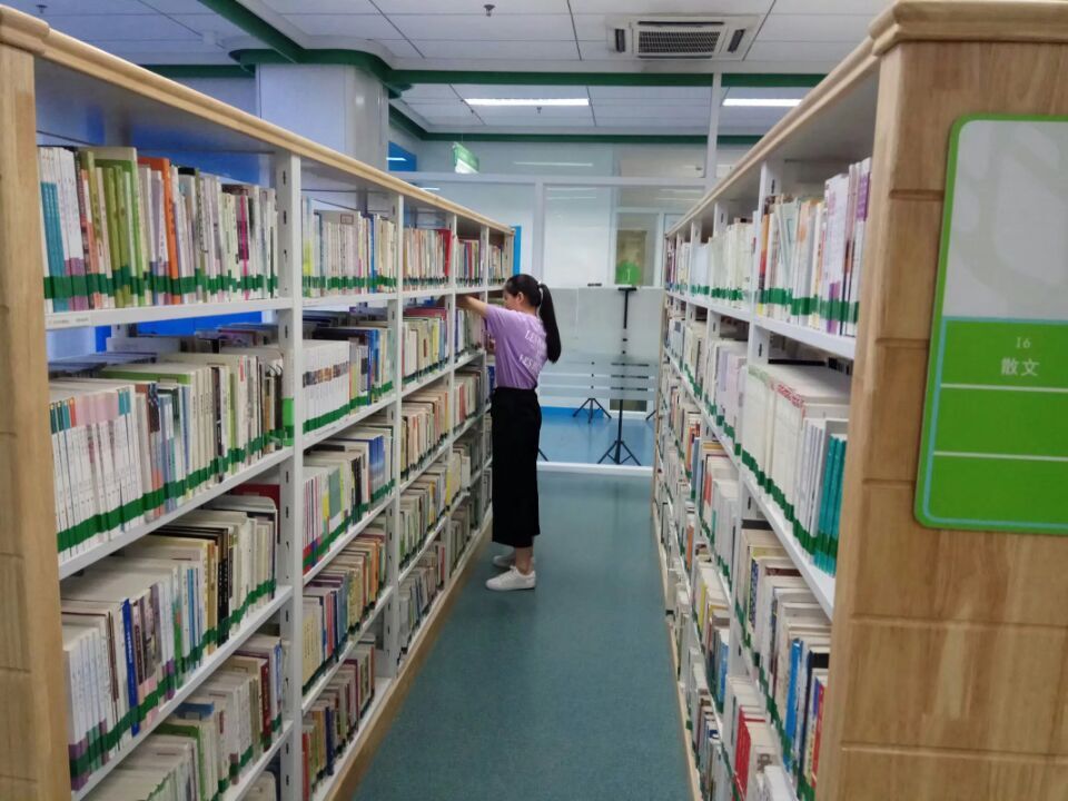 清晨,志愿者在领队的带领下早早的来到山东省少年儿童图书馆,听从工作人员的安排,负责着自己管理的书架,仔细检查着每一本书有没有按色标排序,是否整齐。志愿者还帮助读者查找图书的位置,解决读者的疑问,引导读者读书。有的小孩子们也对此十分感兴趣,而且还争着抢着要跟志愿者们分享他们有趣的故事。