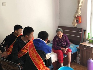 志愿者们佩戴着鲜艳的绶带,左肩右挎、左高右低,绶带覆盖住了心的部位,表达了他们的正心诚意。同学们不辞辛劳,包揽了公寓内部分区域的卫生工作:用干净的湿布擦拭老人们的房门、窗户、桌椅和老人们平时要扶着行走的不锈钢栏杆等物件;用拖布拖了老人们房间内的木质地板和走廊内的石质地板;为老人们整理房间等。