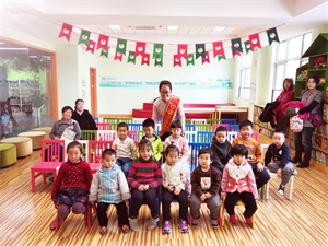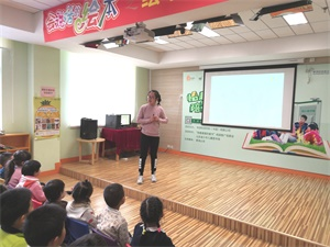 期间,志愿者为小朋友讲了一个关于国王与星星的故事,在故事当中引导小朋友们思考,与他们交流想法同时解答小小脑袋中闪现出的疑惑,小朋友们认真而专注的听完了全程。最后志愿者以一首英文版的小星星的歌唱结束了此次意犹未尽的故事会演讲。