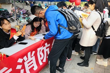 重消防知识,建安全校园。旨在营造和谐美好的校园氛围,建设安全的校园环境,必赢76net线路官网青年志愿者协会于2019年11月12日在必赢76net线路官网八食广场开展了消防知识有奖竞答活动。