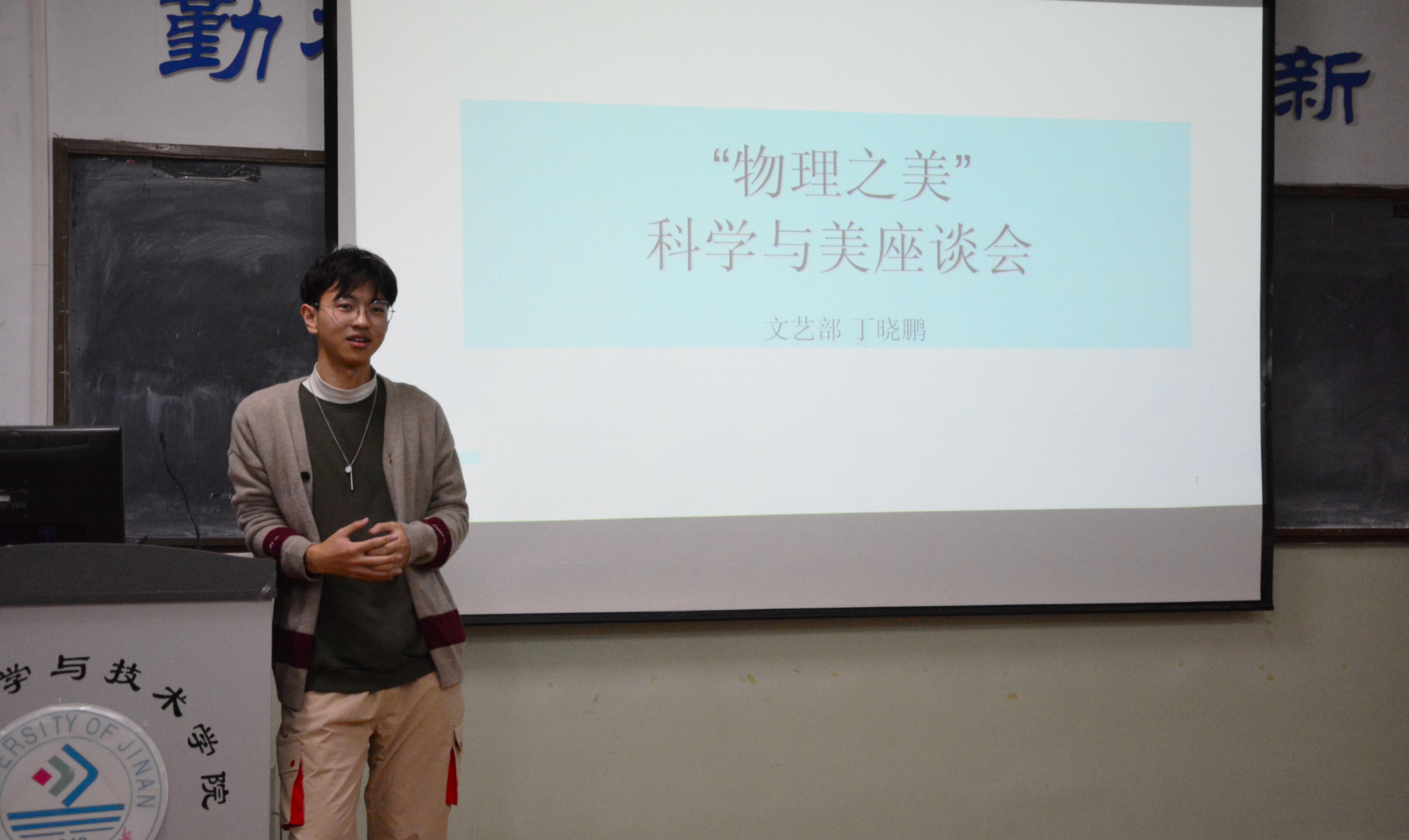科学是绝妙的美育教材,为加深学院学生对美的认知,响应社会对“加强对理工科大学生的科学与技术美学教育”的号召,提高同学们对科学美的感知力、理解力和鉴赏力,必赢76net线路官网于11月20日在第七教学楼举办“物理之美”科学与美座谈会。本次会议由文艺部部长丁晓鹏主持,2019级各班班级代表共同参与讨论。