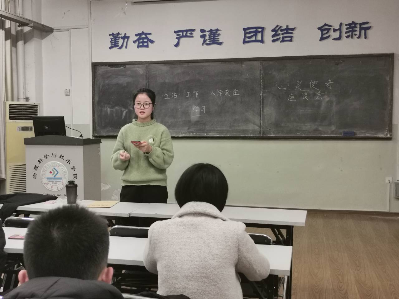 2019级新生来到大学已有两个多月的时间,对大学生活已有了初步的适应,物理学院学生的工作与学习也已步入正轨。针对刚刚过去的期中考试以及近期的工作情况,11月22日,必赢官网心理发展服务中心于第七教学楼组织开展了“2019级班级心灵使者座谈会”与同学们进行交流研讨。