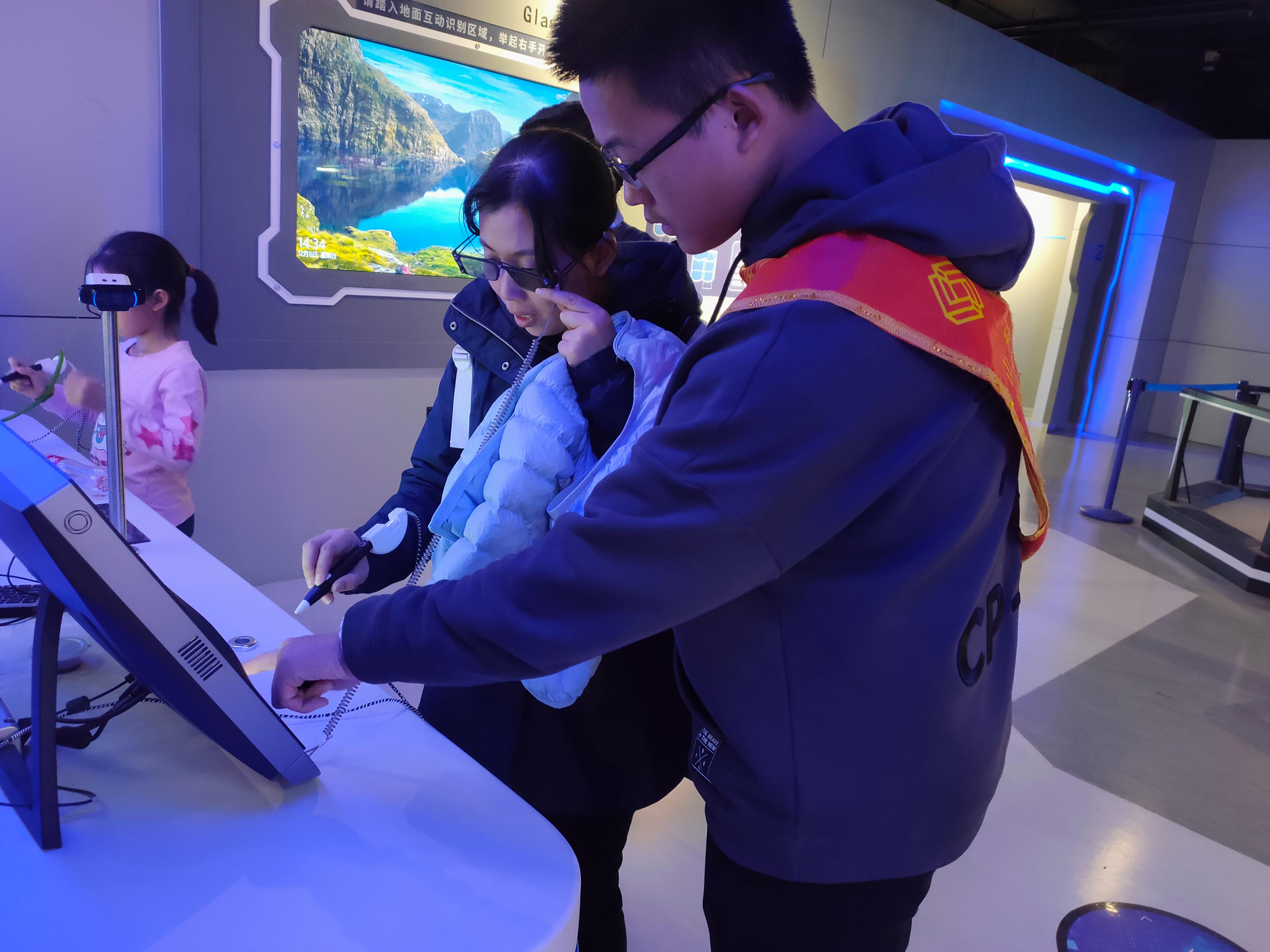 志愿者在学校新西门口集合后,由张凤茹学姐统一带队。到达科技馆之后,志愿者先是听从工作人员的详细介绍,之后根据现场情况分配好工作。志愿者们在科技馆中帮助现场的工作人员维持良好的秩序,并为来到科技馆参观的孩子们认真详细地介绍展览项目。现场的志愿者用自己幽默风趣的话语为到场的孩子们详细讲解展览馆的各种有趣的科技设备,并为孩子们解释了科技对于一个国家的重要性。没有强大的科技,就不会有强大的祖国。就像当年邓小平爷爷在全国科学大会上提出的“科学技术是第一生产力”,更是表明科技对于我们国家的重要性和不可或缺性,同样也向孩子们表明了学好物理的重要性。志愿者们用轻松风趣的话语为孩子们介绍科技带来的变化和好处,提高孩子们对于物理和科技的兴趣和好奇。用行动来诠释身为志愿者应尽的义务。用实际行动为参观的孩子们创造一个良好的环境,让孩子们可以在良好的学习氛围中学习到更多的科普知识,找到学习科技的乐趣。