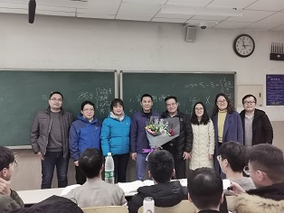 与往常一样的是,这堂课既有在物理中的思考与讨论,又在张仲老师的幽默授课下时而传来阵阵笑声;而不同的是,最后一课似乎又多了一份温情,多了一份不舍。课间时间,与张仲老师同为物理系老师的宋世学老师携部分曾与张仲老师共同工作的同事们走进了教室,为张仲老师献上鲜花还有最真挚的祝福。数十年的共事生涯,张仲老师既是许多年轻老师们的引路人,也是老师们心中最好的同事,积攒的千言万语,全都藏在老师们写的温情的卡片中,这一刻,是感动,也是幸福与满足。在课堂的最后,张仲老师向他最爱的学生们表达了他的祝愿,期待着同学们的成长与成才--这也是数十年来他最幸福的事。