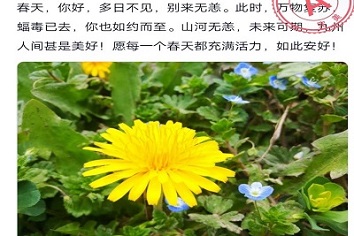 虽然此次疫情对人们的生活产生了很大的影响,但灾难终会过去,未来是美好的,待疫情彻底结束,一切归于平静之时,大家相约济南,信步去看一场花事,渡船去赏一湖春水。通过此次活动,同学们放松了心情,感受了春的到来,也期盼同学们能够在接下来的学习生活中拥有良好的心态去面对,以美好的心灵去享受春暖花开之日。