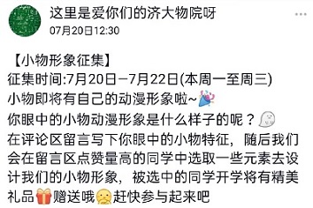 小小和物物一经公布,就受到学院同学及老师的一致好评。他们的诞生不仅为“小物”科普志愿活动注入新鲜血液,更有利于宣传“小物实验室”及深入解读物理学院青年学生的阳光形象,愿此次暑期志愿活动会在小小和物物的协助下取得更大进步。