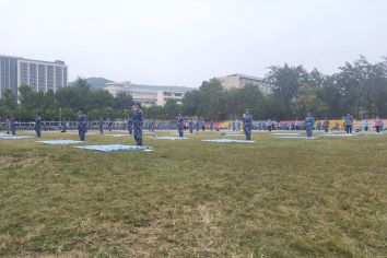 下午三点,物理学院新生已经到达北苑操场,在各助班、宿导的带领下列队等待,身背自带被具,为比赛做着准备。开幕式上楼管会负责人代表学校向新生致辞,希望新生能通过此次叠军被大赛加强对整理宿舍内务的重视,培养团队精神和集体荣誉感。随后,各学院间进行拉歌,他们精神饱满、士高气昂,展现出朝气蓬勃的精神面貌。翼虎军团的教官向同学们进行叠军被标准演示,讲解叠军被的具体要求,以及此次比赛的流程和奖项设置。