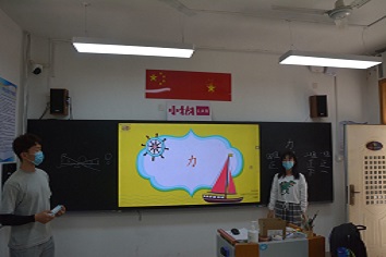 铃声响起,同学们迅速回到了教室,端正坐姿,等待志愿者们开课。课一开始,同学们就积极响应志愿者的提问,更可贵的是,随着时间的进行,同学们热情丝毫未减,依然有人积极举手回答问题。课堂生动有趣,志愿者不光给同学们讲解各种各样的力,还给同学们准备了牛顿的小故事,让同学们走近物理学家,感受到了物理学家看待世界,思考问题的方式角度。除此之外,志愿者还准备了弹簧测力计来进行重力的测量,将理论与实验相结合,让学生们在动手的过程中真正领悟消化课上讲解的知识。在这一环节中,明显发现学生与老师的距离越来越近,一些害羞的同学敢于主动向老师提问,课堂氛围在这一环节变得更加活跃有趣。